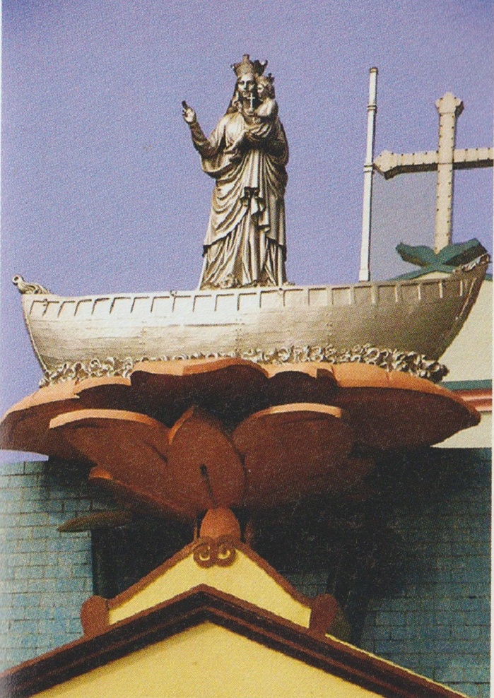The Portuguese built a Church in 1599, less than two decades after establishing their settlement in Bandel de Hoogly, close to Calcutta in eastern India. It was dedicated to Nossa Senhora do Rosario, also known as “Nossa Senhora da Boa Viagem”, meaning “Our Lady of the Good Voyage”. In 1632 the Moghul Emperor Shah Jehan attacked and destroyed the settlement including the church. A year later he allowed the colony to be rebuilt and gifted land to the local Christians. The Church now stands as the Basilica of Our Lady of Bandel. A ship’s mast in front of the Church was donated by the Captain of a vessel that was saved by the Virgin from a storm in the Bay of Bengal. The feast of Holy Rosary is celebrated on the 2nd Sunday of November and Our Lady of Happy Voyage on the 1st Sunday of May.