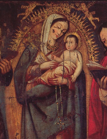 Op 26 december 1586, toen Maria Ramos na het gebed de kamer verliet, viel het schilderij. Een inheemse vrouw genaamd Isabel riep uit: "Kijk!" Het schilderij stond rechtop, stralend, met diepe kleuren en de gescheurde stof hersteld. Meer wonderen, een kerkelijk onderzoek en een reeks kerkgebouwen volgden. Hoewel het schilderij met de tijd vervaagde, nam de devotie toe.