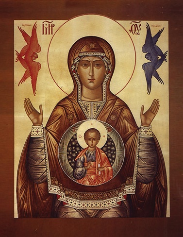 Toen ze de icoon droegen, vuurde de vijand een salvo pijlen af op de processie, en een ervan doorboorde het gezicht van de Moeder Gods. Tranen rolden uit haar ogen en de icoon draaide zijn gezicht naar de stad. Na dit goddelijke teken overviel de vijand plotseling een onuitsprekelijke angst. Ze begonnen elkaar aan te vallen, en de inwoners van Novgorod vochten onbevreesd en behaalden de overwinning.